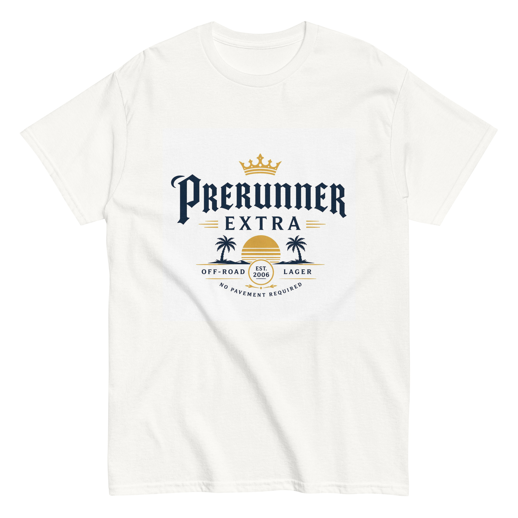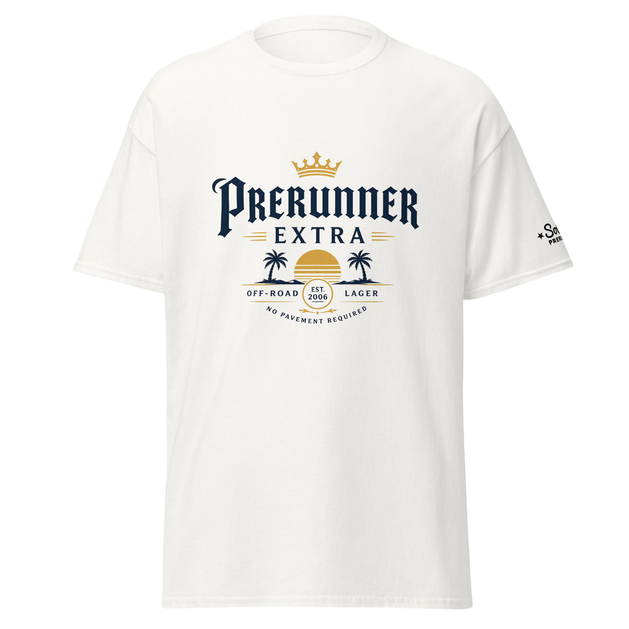 The Prerunner Extra Tee blends off-road culture with a laid-back coastal vibe. Featuring a bold “PRERUNNER EXTRA” layout with palm trees and a stylized sunset, this design keeps things simple while still hitting.
