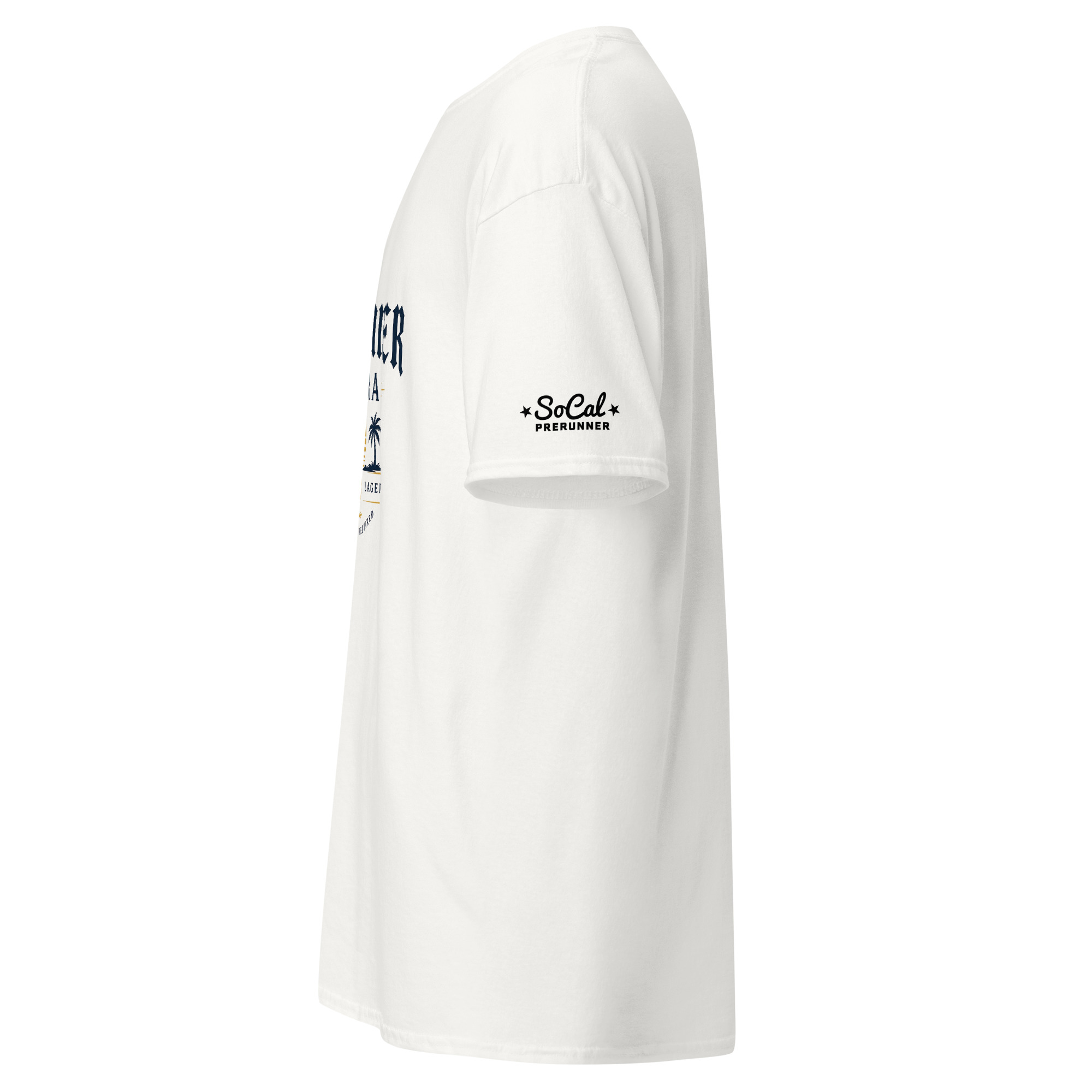 Printed in navy and gold on a white tee, it’s made to go from desert runs to beach days without missing a beat.
